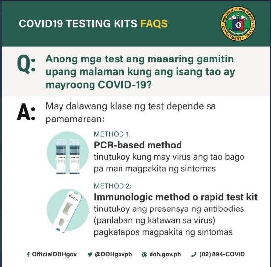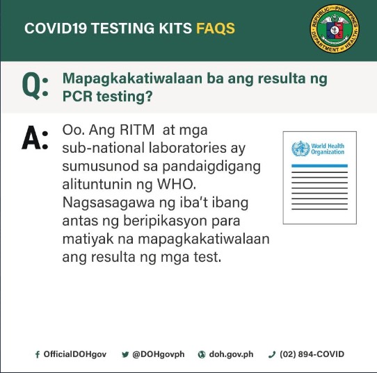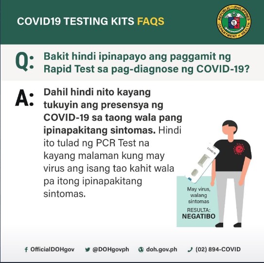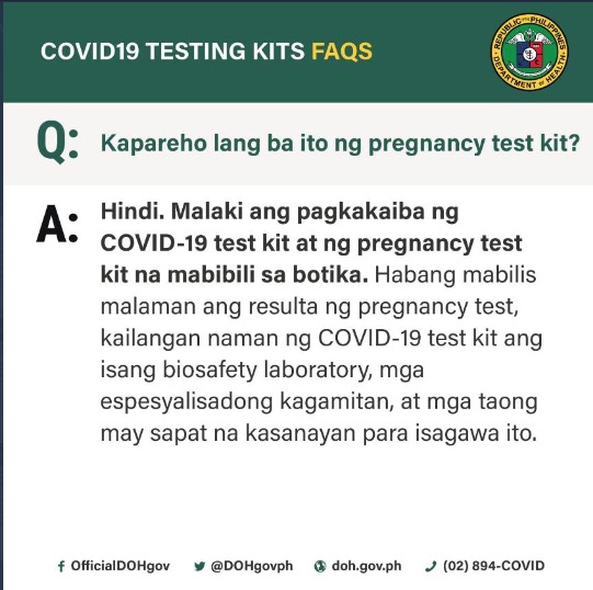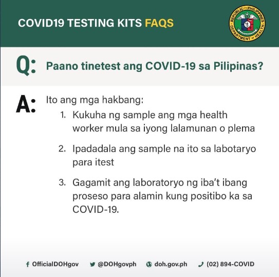 COVID 19 TESTING KITS FAQs from the Department of Health